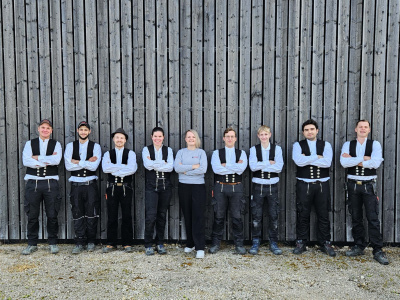 Heute Morgen standen unsere Zimmerer schon in der Sonne – bereit für den Tag, im traditionellen Outfit und mit echter Leidenschaft fürs Handwerk.
